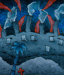 The stories from outside my life were now making their first appearances; observations on politics and history, along with the factories, smokestacks, more windows, spikes, lots of spikes, ghosts, gravestones, fish and birds. Many of these things have been swimming in and out of my work for years, decades. I was developing metaphor to get into deeper truths.